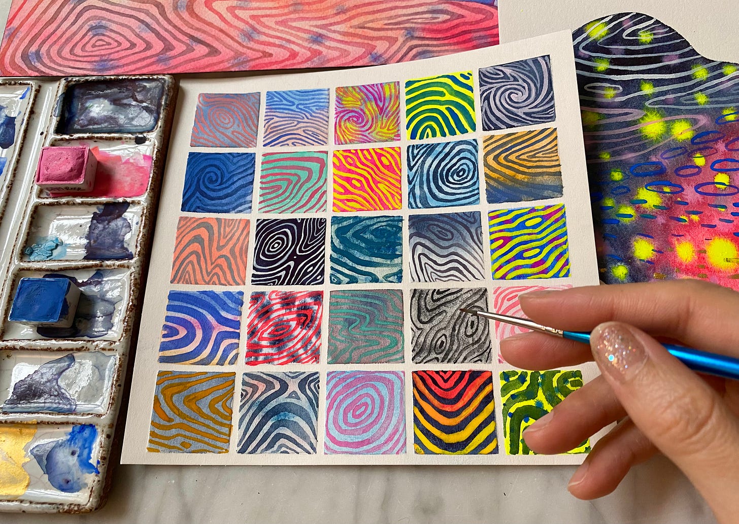 There is a strange pleasure in painting this pattern, repeatedly, in multiple iterations. The more I do it, the more I’m reminded of stuff I find fascinating. As I look forward to getting printed tomorrow, I asked myself “why do we even have fingerprints?” and it turns out they’re vital to the mechanism of human touch.